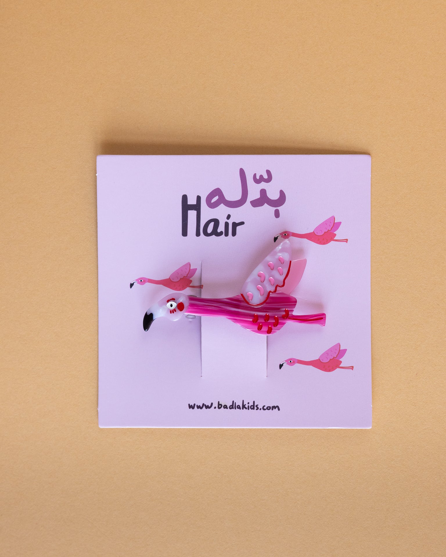 This adorable flamingo hair clip is perfect for pairing with your Eid PJ or adding a touch of fun to any outfit. The metal arm and clip utilize spring tension for a secure and snappy hold.