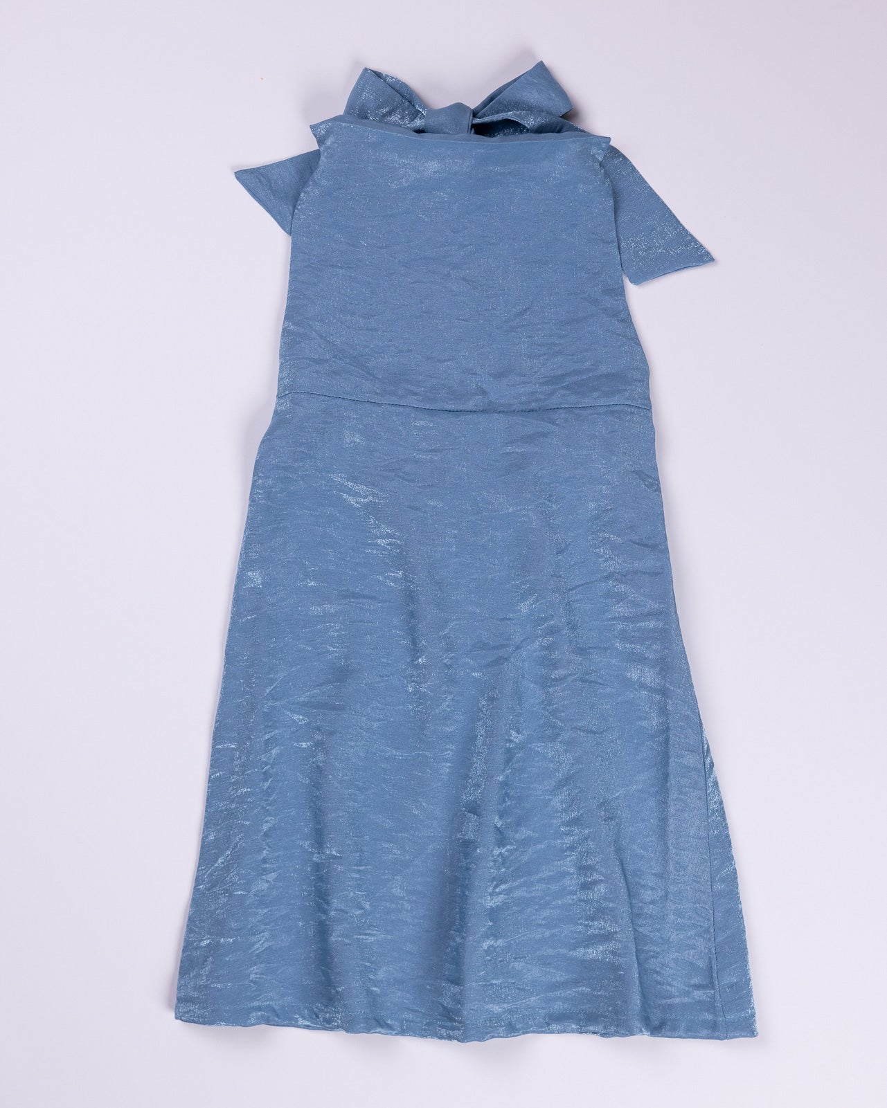 Sleeveless maxi dress in shiny blue, regular dress fit.