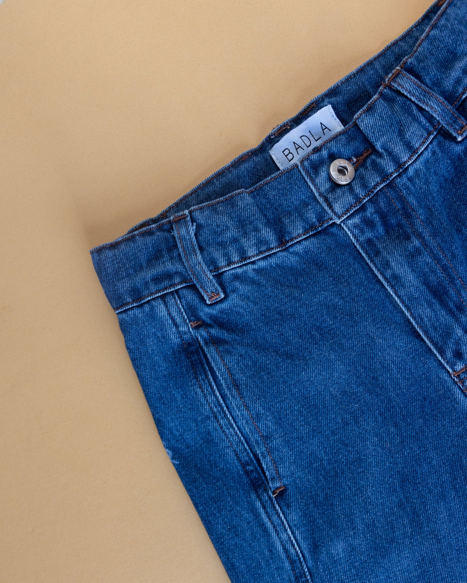 Blue Denim Skirt with Qatar Print