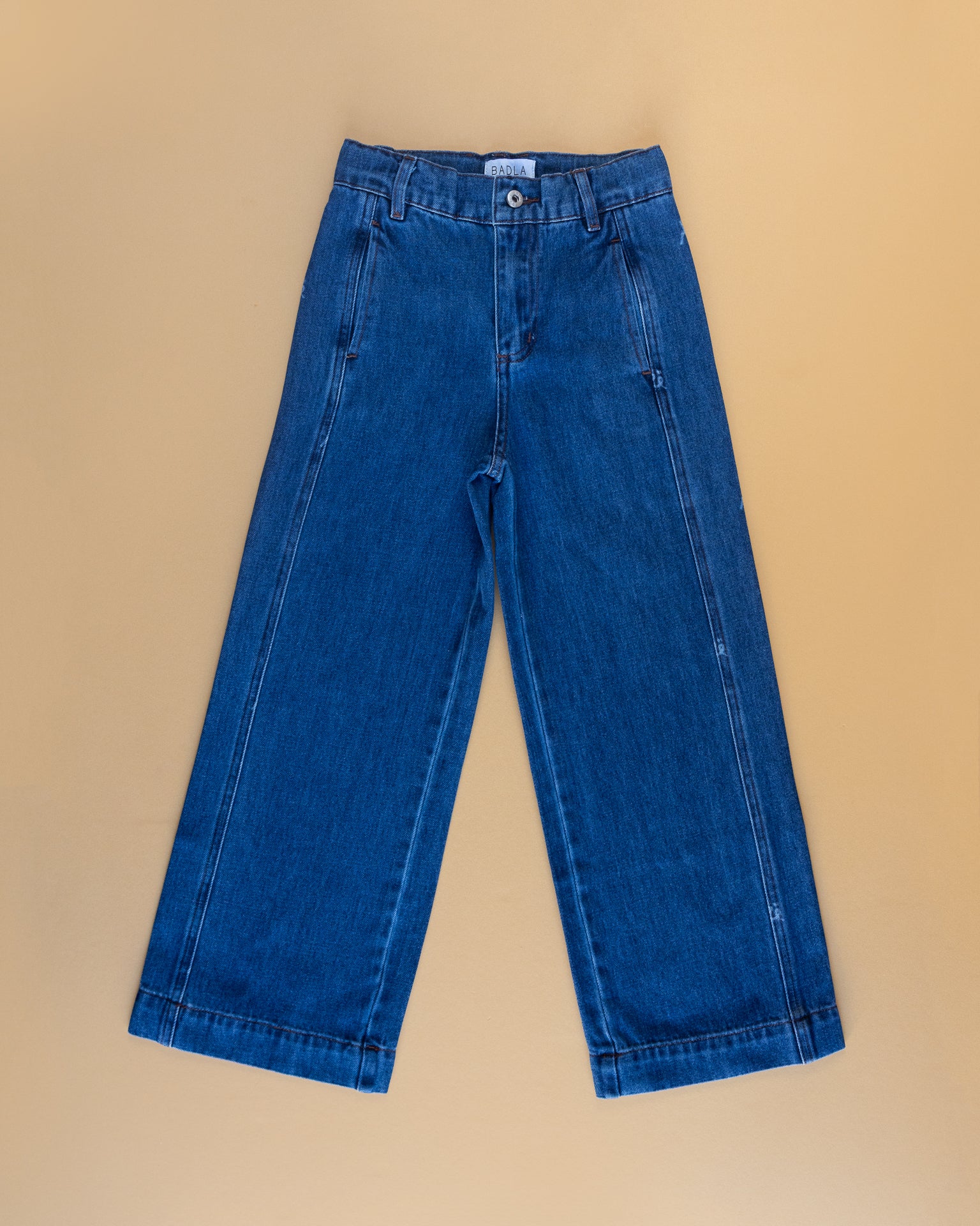 Blue Wide Leg Jeans with Qatar print